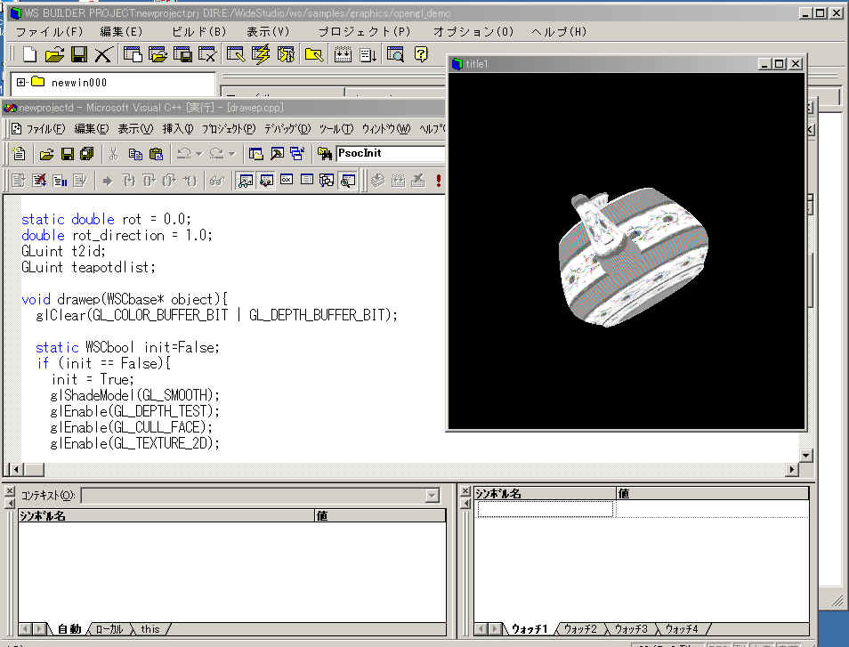 ・MS VC++6.0で opengl_demo をデバッグしている画面です。