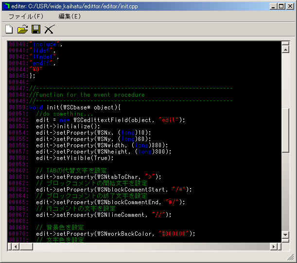 WSCtextFieldクラスの拡張版ですので、機能は準じます、ちなみに内部処理の関係上大きなファイルの表示に関しては、問題がります。